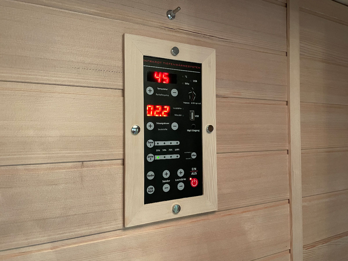 Wohltuende Entspannung mit musikalischer Untermalung: unser eingebautes Radio/Audiosystem mit USB- und MP3-Anschluss und zwei eingebauten Lautsprechern in der Kabinendecke sorgt für individuelle musikalische Unterhaltung während der Infrarottherapie.
